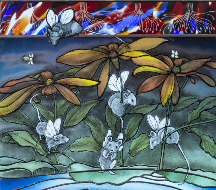 image: This stained-glass detail symbolizes valuable insights gained from comparative studies in fruit flies and mice.