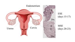 image: The proportions of epithelial (E) and stromal (S) cells vary in endometrial tissue between early secretory (ESE) and mid-secretory phases of the menstrual cycle. This affects the gene expression profile of the endometrial tissue sample used in the clinical setting for selecting the best day for embryo transfer in infertility treatment.