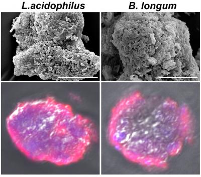 image: Smectite microspheres specifically support the typical probiotics, L. acidophilus and B. longum to form biofilms on the surface.