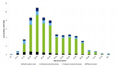 image: Economic costs (2019 US dollars) of eating disorders by age group and gender.