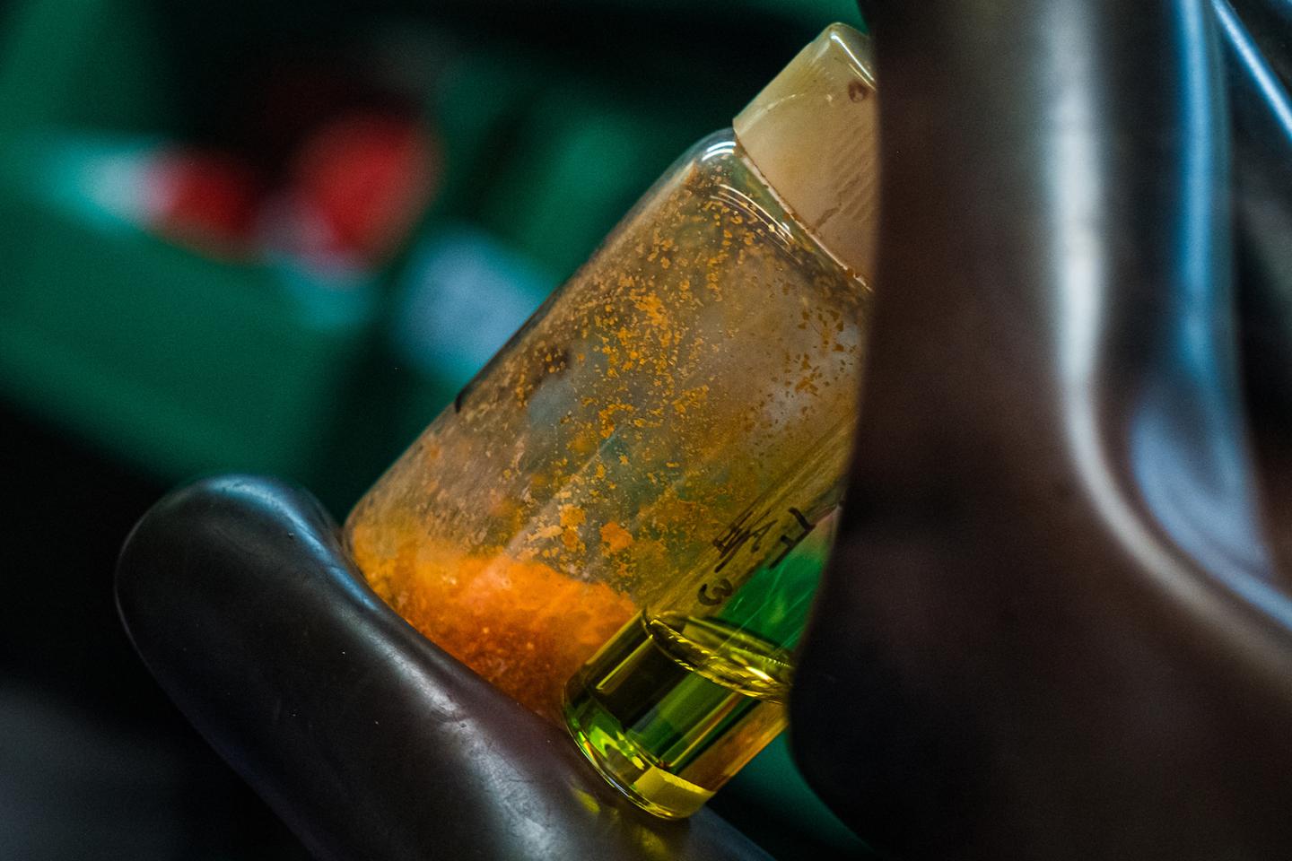 image: Rice University chemical engineering graduate student Siraj Sidhik holds a container of 2D perovskite "seeds" (left) and a smaller vial containing a solution of dissolved seeds that can be used to produce thin films for use in highly efficient optoelectronic devices like high efficiency solar panels.
