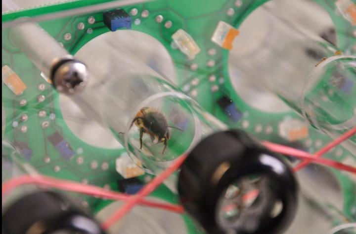 image: Female of the solitary red mason bee inside the Locomotor Activity Monitor system for registering activity rhythms