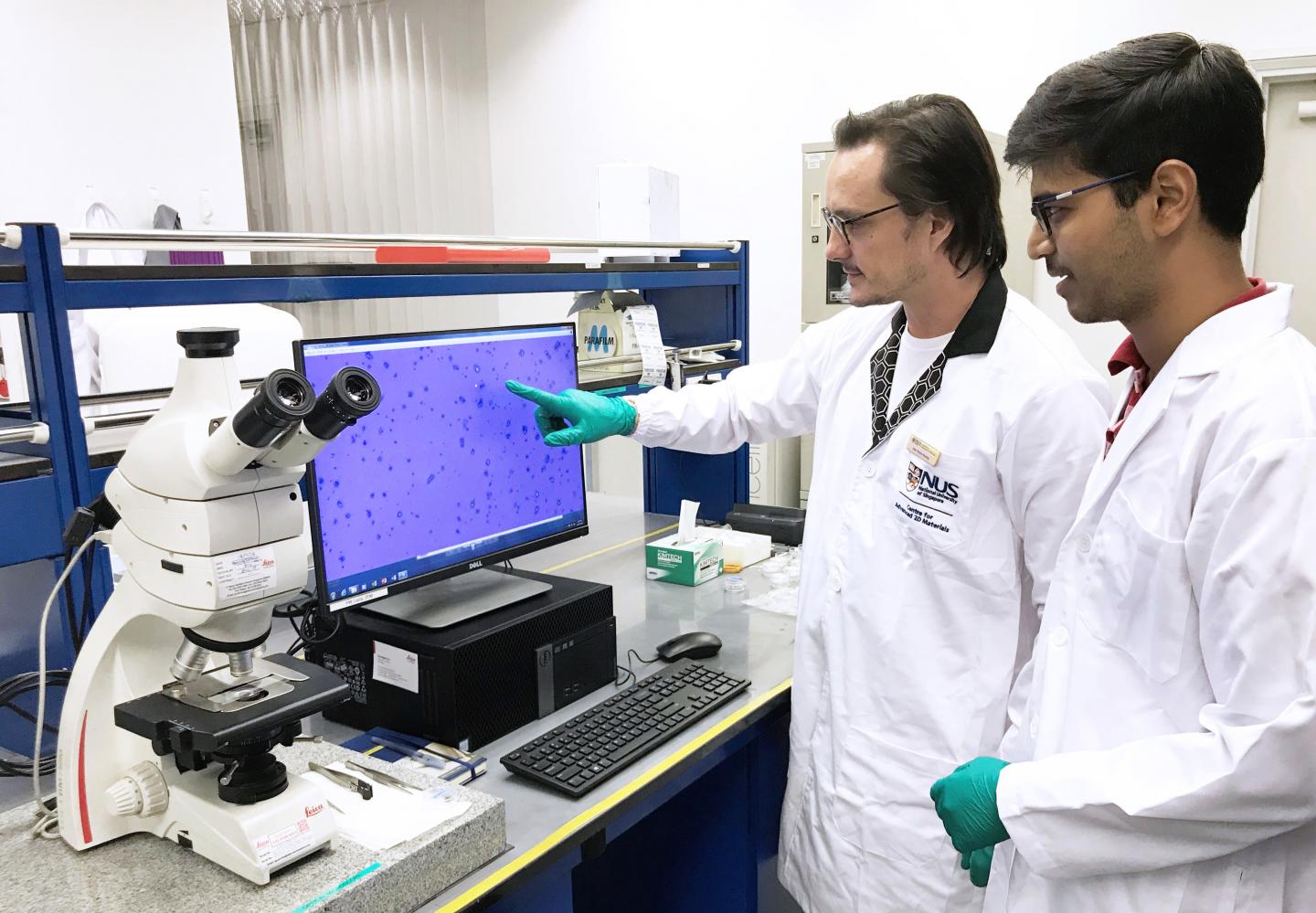 image: These are researchers from the NUS Centre for Advanced 2D Materials examining the quality of graphene samples.