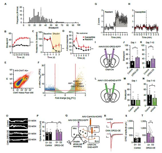 By applying electrophysiological and optogenetic techniques to cocaine self-administration model, the research team identified DRD2* overexpression in cholinergic interneurons (ChINs) of the nucleus accumbens* (NAc) of mice susceptible to addiction.