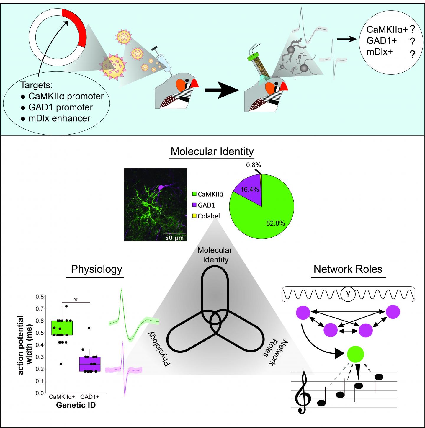 "In the songbird community, we've had a hunch for a long time that when we record the electrical signatures of these two cell types, we say - 'that's a putative excitatory neuron, that's a putative inhibitory neuron.' Now we know that these features are grounded in molecular truth," Remage-Healey says. "Without being able to pinpoint the cell types with these viruses, we wouldn't be able to learn how the cell and network features bear resemblance to those in mammals, because the brain architectures are so different."