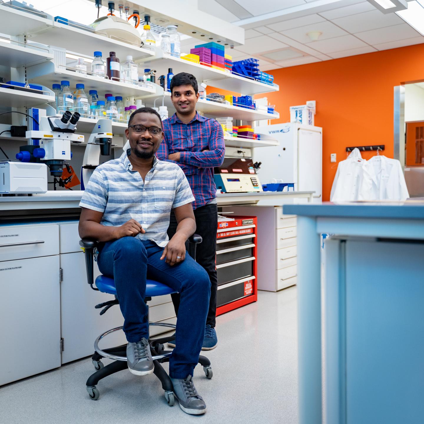 image: Douglas Asede and colleague Divyesh Doddapaneni, co-first authors of the new paper "Apical intercalated cell cluster: a distinct sensory regulator in the amygdala"