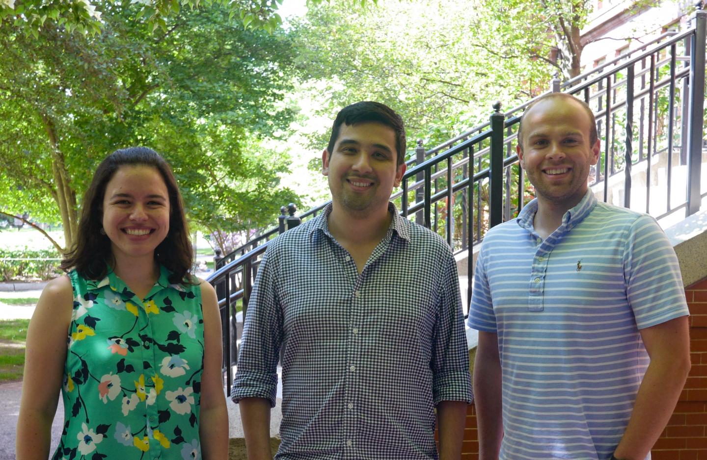 image: Left to right: co-lead author Fabiana Duarte, co-senior author Jason Buenrostro, co-lead author Caleb Lareau.