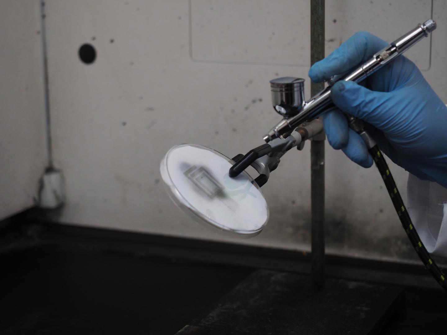 The group initially tested the spray-on application of the antenna ink on a rough substrate - cellulose paper - and a smooth one - polyethylene terephthalate sheets - the next step for their work will be looking at the best ways to apply it to a wide variety of surfaces from glass to yarn and skin.