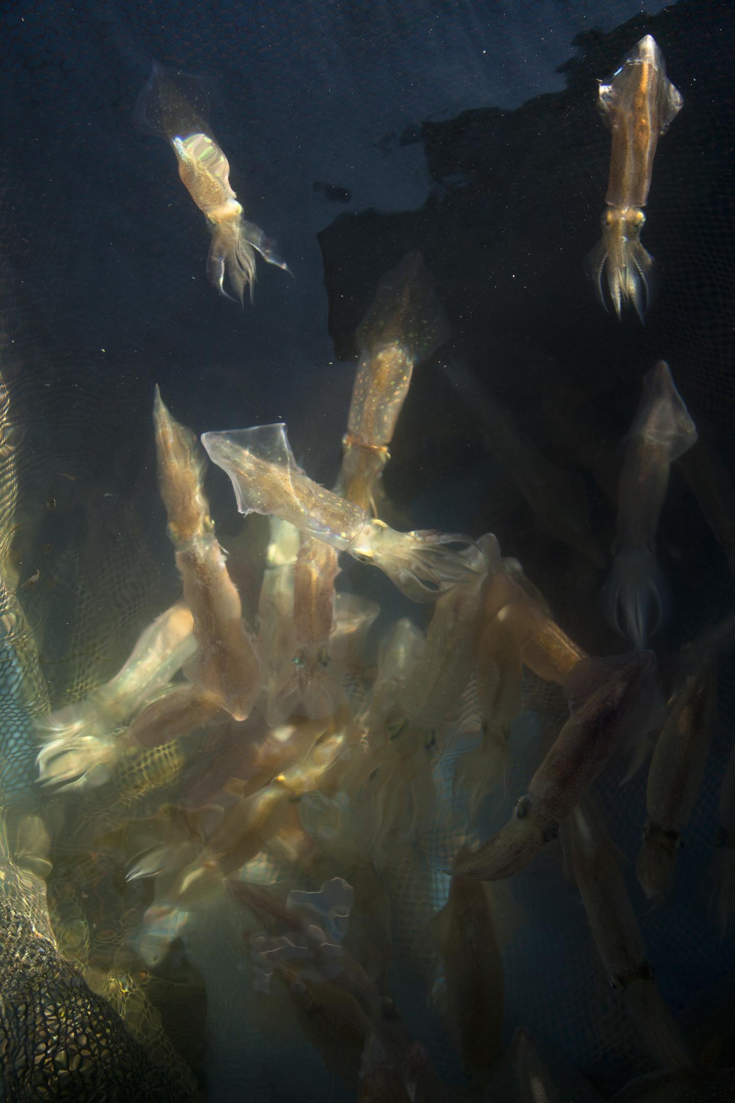 image: A catch of the longfin inshore squid (Doryteuthis pealeii) aboard the collecting boat of the Marine Biological Laboratory, The Gemma. This species has been used for basic research in neuroscience since the 1930s.
