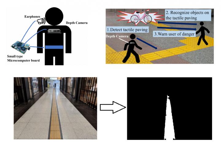 In an effort to tackle these problems efficiently, Dr. Premachandra and his team have developed a new image processing algorithm that can more accurately detect tactile paving. As described in their latest study published in IEEE Access, their proposed support system consists of a forward-facing depth camera worn around the chest that is connected to a small microcomputer board roughly the size of a credit card. The board continuously executes the image processing algorithm on the data captured by the camera and detects tactile paving. If an obstacle on the tactile paving is detected, the system warns the user through earphones.