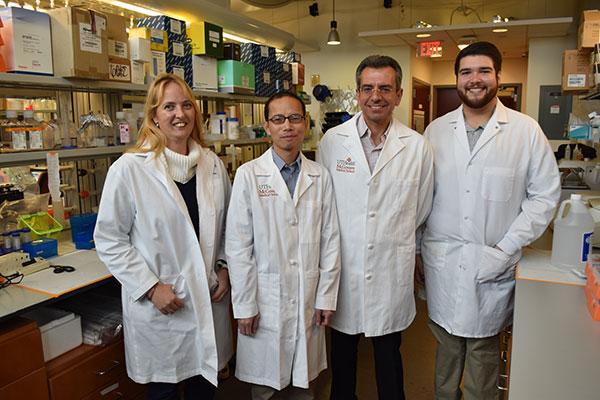 image: UTHealth stem cell researchers, from the left, are Nadine Matthias, DVM; Jianbo Wu, Ph.D.; Radbod Darabi, M.D., Ph.D.; and Jose L. Ortiz-Vitali.