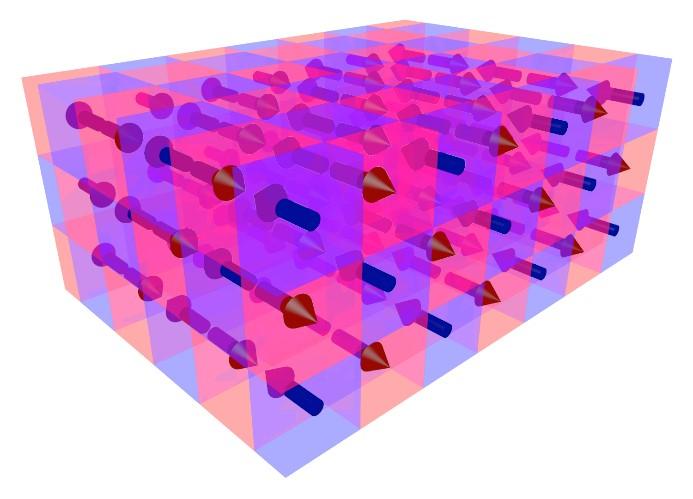 image: The microscopic moments in antiferromagnetic materials have alternated orientation, in contrast to the ones of ferromagnets.
