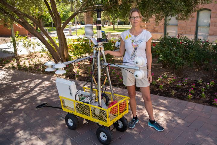 image: This is Ariane Middel with a MaRTy unit on ASU's Tempe campus.
