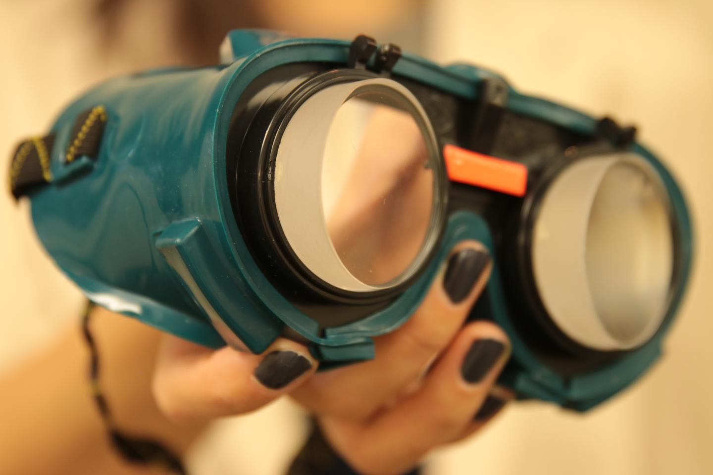 image: Prism goggles are used in to deliver prism adaptation therapy (PAT) to stroke survivors with spatial neglect. The KF-PAT was developed by a team of scientists and clinicians at Kessler Foundation.