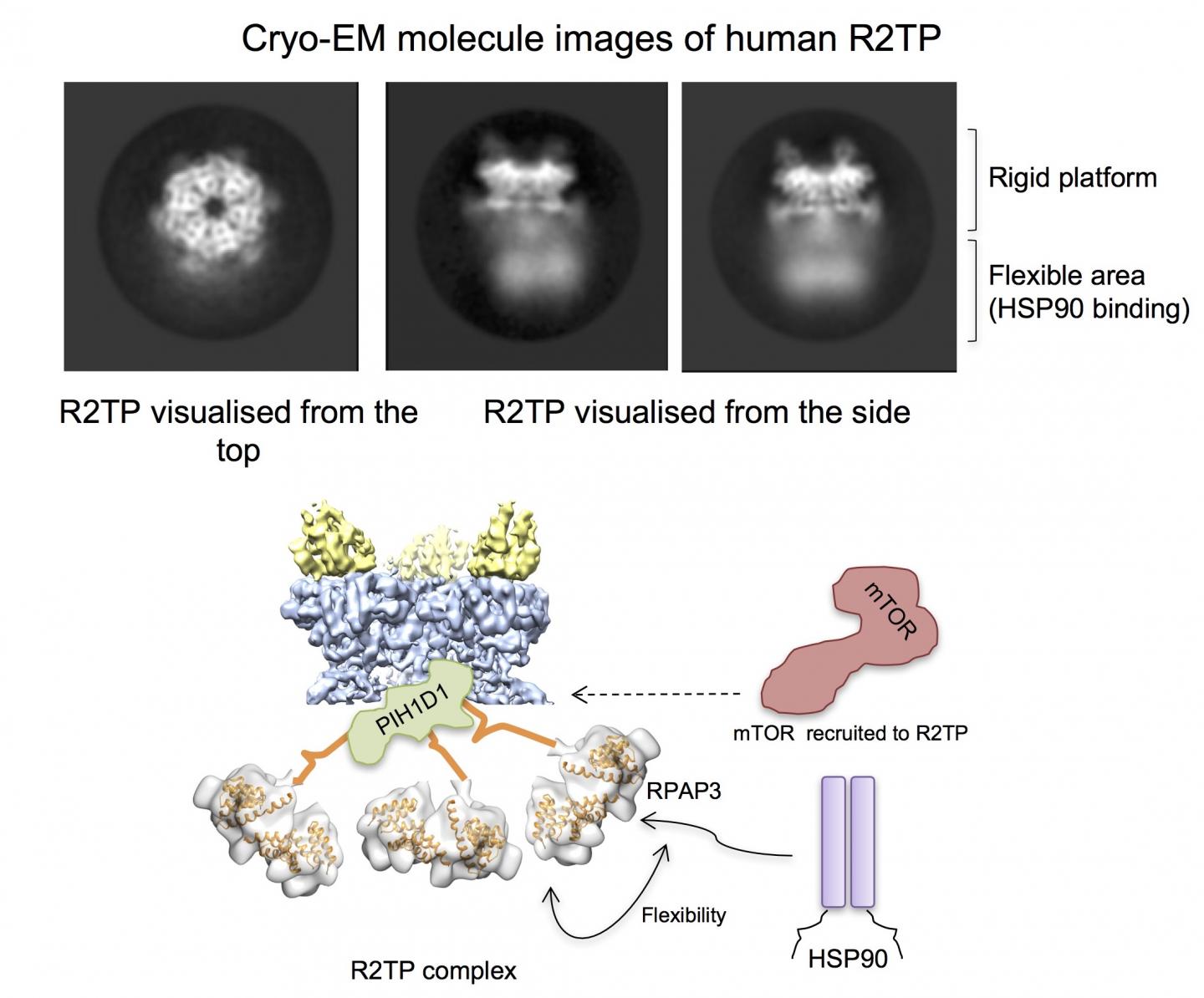 "This first observation of the human R2TP system has allowed us to understand its structure and functioning mechanisms, which were previously unknown. Our next steps will be to study the details of how R2TP and HSP90 are able to assemble the complexes made up of kinases of the mTOR family, in order to find ways of interfering with these processes", concludes Llorca. "The R2TP system is also involved in the activation of other essential molecules for the cell and in the development of cancer, such as the RNA polymerase, telomerase, or the 'splicing' system, areas that we intend to explore in the future".