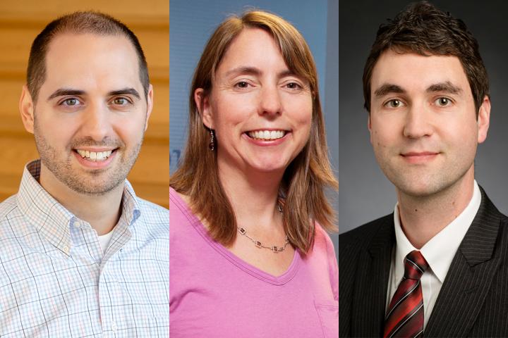 image: An interdisciplinary team of researchers at the University of Illinois at Urbana-Champaign studied the efficacy of workplace wellness programs and found only a modest impact on employee health, health beliefs and medical utilization. From left, finance professor David Molitor; recreation, sport and tourism professor Laura Payne; and finance professor Julian Reif.