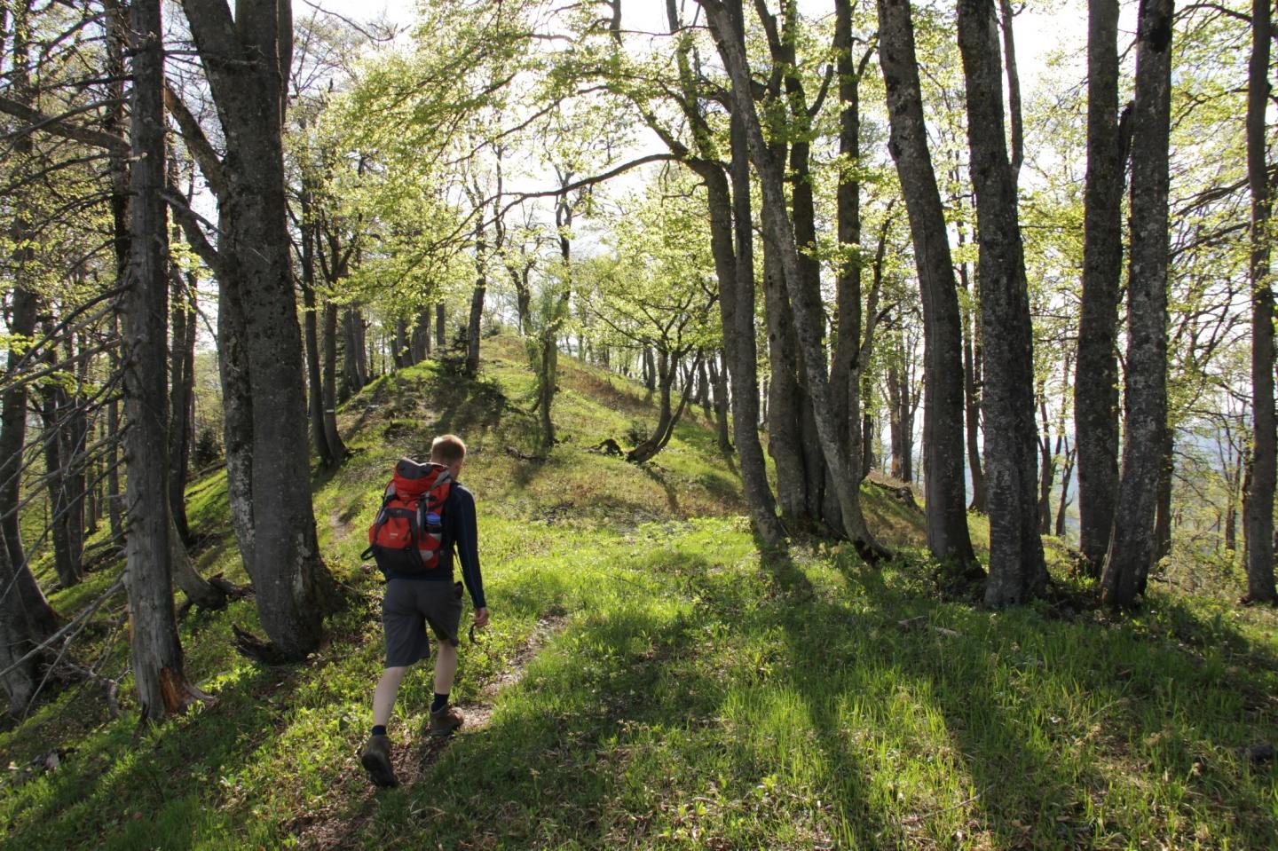 image: UVM forest ecologist Bill Keeton walks a low ridge line in a stand of old-growth beech in the Alps, Kalkalpen National Park, Austria.