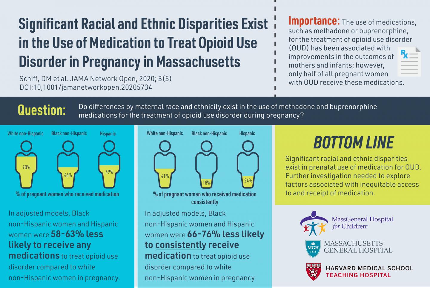 "We found evidence of striking racial and ethnic differences in terms of medication receipt, continuation of medication use, and type of medication received by pregnant women with OUD," said Davida Schiff, MD, with the Division of General Academic Pediatrics, MassGeneral Hospital for Children, and lead author of the study, published in JAMA Network Open.