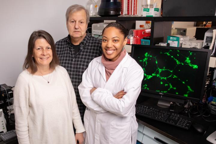 image: The compounds in frying oils that are repeatedly reheated to high temperatures may trigger cell proliferation and metastases in breast tumors, scientists in food science and human nutrition at the University of Illinois found in a new study of mice. The researchers, from left, food chemistry professor Nicki J. Engeseth, food science professor William G. Helferich and graduate student Ashley Oyirifi.
