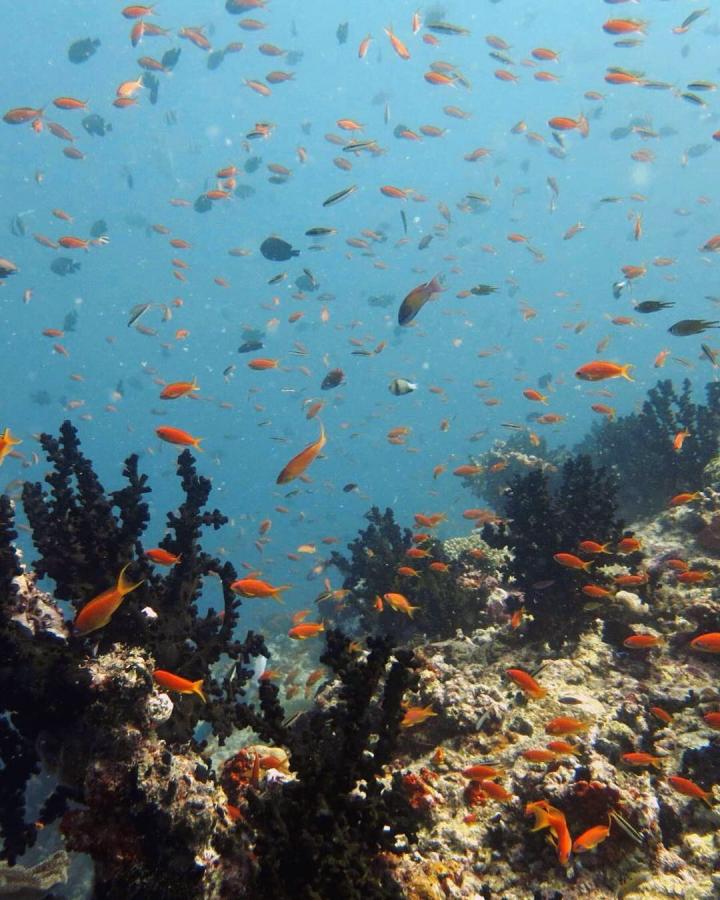 image: Plankton-feeding fishes often dominate the fish assemblage on oceanic coral reefs.