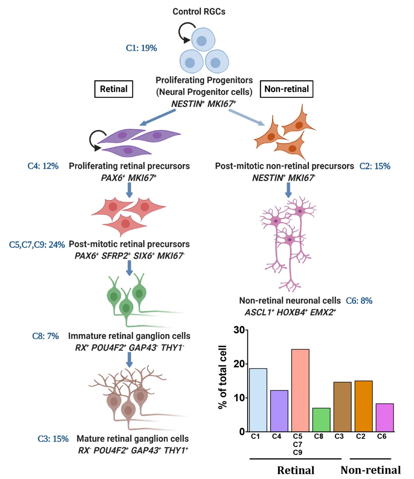 They observed that the developmental trajectories, beginning from neural stem cells to RGCs, were similar between SIX6 risk allele and control RGCs.