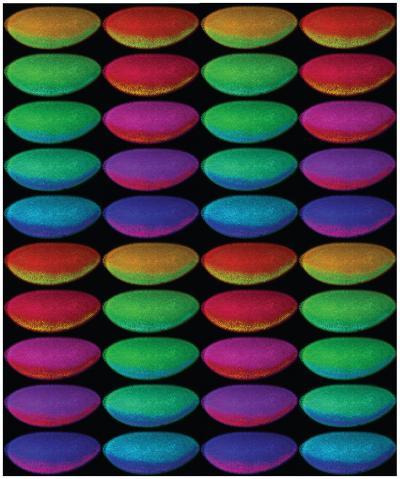 This is an artistic interpretation of embryos from different Drosophila species stained with Twist antibodies.