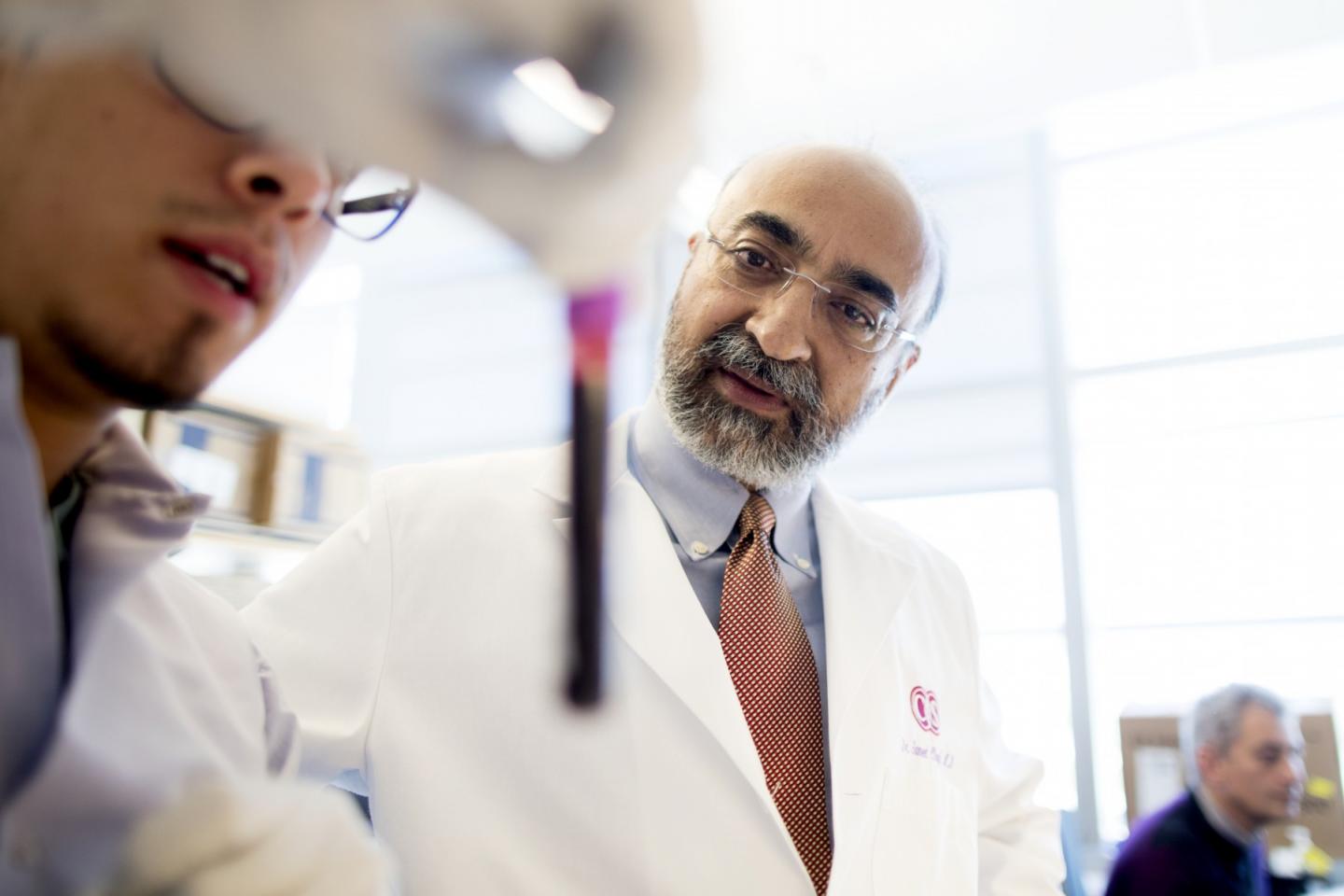 image: This is Sumeet Chugh, MD, at work in his laboratory.