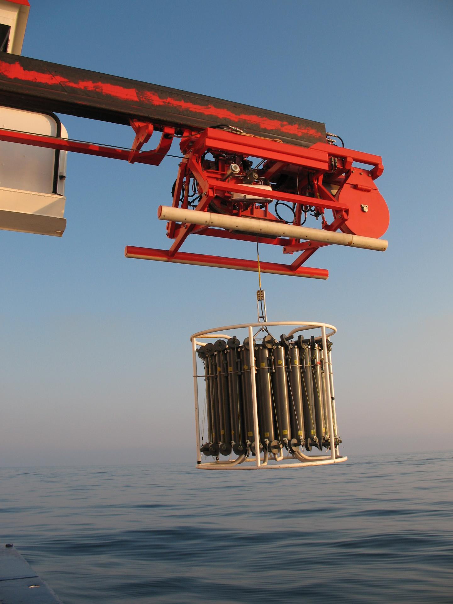 image: So-called rosette samplers are used to take water samples at different water depths. The Oldenburg team analyzed the distribution of dissolved organic matter in the Black Sea.