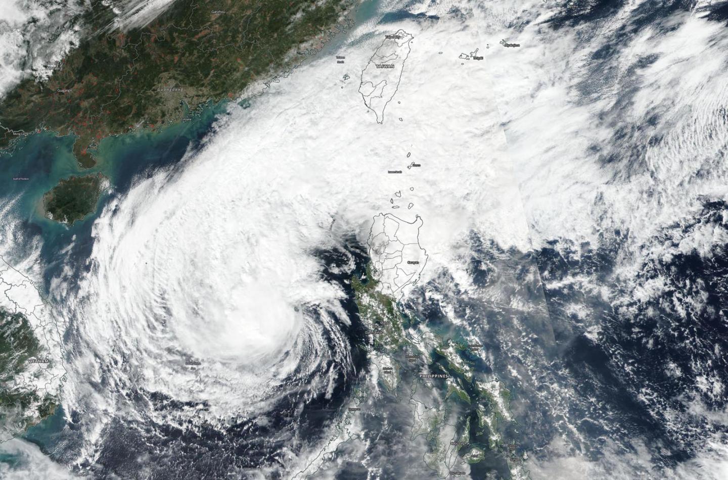 The Visible Infrared Imaging Radiometer Suite (VIIRS) instrument aboard Suomi NPP provided two visible images of Kammuri on Dec. 4 that were combined at NASA's Goddard Space Flight Center in Greenbelt, Md. to show the entire storm. NASA Worldview, Earth Observing System Data and Information System (EOSDIS) provided the image. The combined VIIRS image showed that Kammuri's center of circulation was almost in the center of the South China Sea, while a tail of clouds streamed over Luzon, the northern Philippines and north to Taiwan.