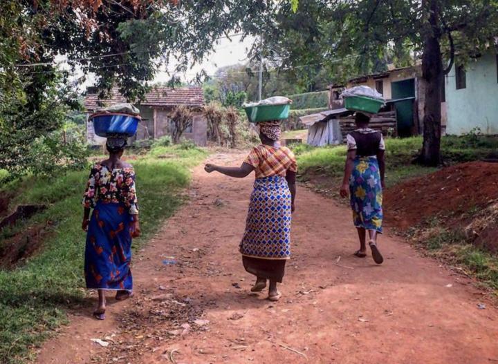 image: Women walk along a road in Tanzania, where nearly 40 percent marry before the age of 18.