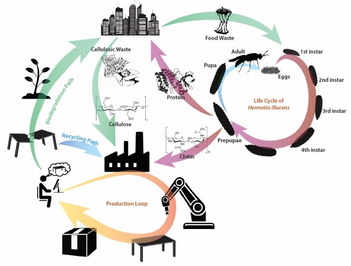 Despite BSF's popularity, the research team ensured that their developed system was not reliant on the use of BSF or any other unique source of materials since chitin and cellulose are present in a myriad of organisms in every ecosystem on earth such as other insects, fungi, and worms. While these organisms are also used to process waste, they in turn produce chitin as a by-product.