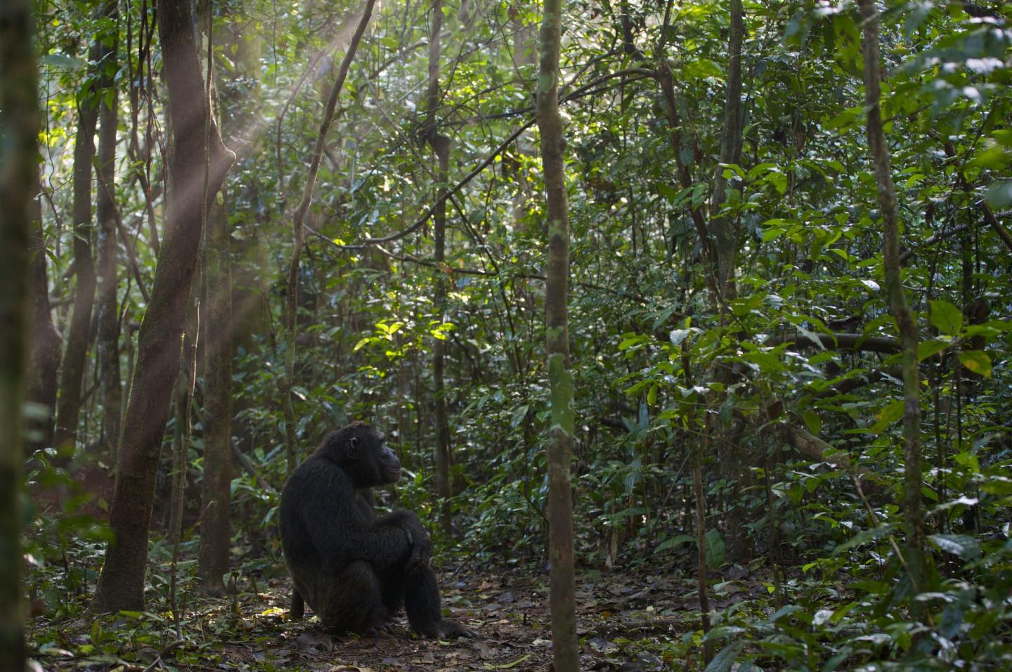 image: A chimpanzee researchers have named Duane watches the sunrise in Uganda.