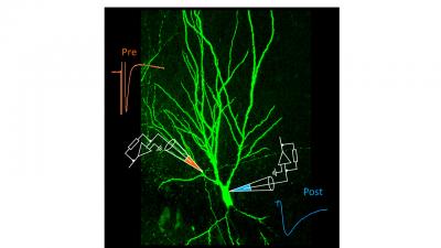 Information flows in a well-defined direction in the brain: Chemical and electrical signals are passed from one neuron to the other across the synapse, from the pre-synaptic to the post-synaptic neuron. Now, Peter Jonas and his group at the Institute of Science and Technology Austria (IST Austria) show that information also travels in the opposite direction at a key synapse in the hippocampus, the brain region responsible for learning and memory. At the so-called mossy fiber synapse, the post-synaptic CA3 neuron influences how the pre-synaptic neuron, the so-called mossy fiber neuron, fires. "We have shown, for the first time, that a retrograde information flow is physiologically relevant for pre-synaptic plasticity," says Yuji Okamoto, a postdoc in the group of Peter Jonas at IST Austria and co-first author of the paper published in Nature Communications.