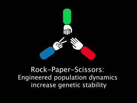 video: This is an overview video of the research described in 'Rock-paper-scissors: Engineered population dynamics increase genetic stability' published in the 6 September issue of the journal Science by M.J. Liao et al. Bioengineers at the University of California San Diego have developed a method to significantly extend the life of gene circuits used to instruct microbes to do things such as produce and deliver drugs, break down chemicals and serve as environmental sensors. Most of the circuits that synthetic biologists insert into microbes break or vanish entirely from the microbes after a certain period of time--typically days to weeks--because of various mutations. But in the September 6, 2019 issue of the journal Science, the UC San Diego researchers demonstrated that they can keep genetic circuits going for much longer. The key to this approach is the researchers' ability to completely replace one genetic-circuit-carrying sub-population with another, in order to reset the mutation clock, while keeping the circuit running.