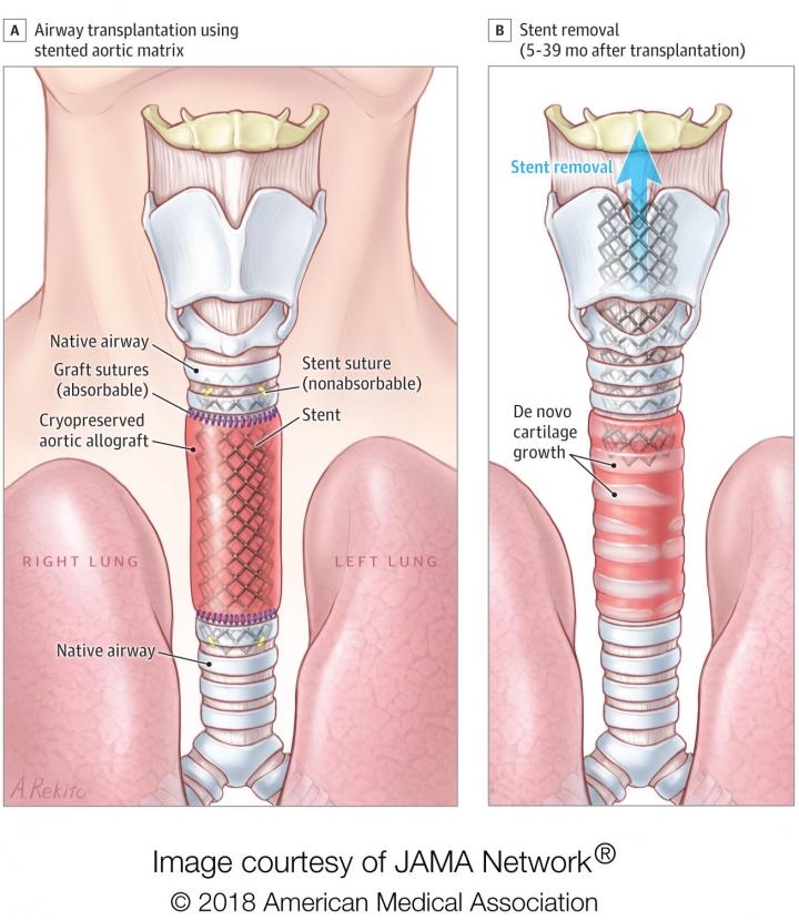 Who and When: 20 patients with lung tumors or tracheal lesions, of which 13 patients had diseased airway sections removed and underwent airway transplantation (5 tracheal, 7 bronchial and 1 carinal, which is where the trachea divides into the bronchi of the lungs); study conducted from October 2009 through February 2017, with final patient follow-up in November 2017