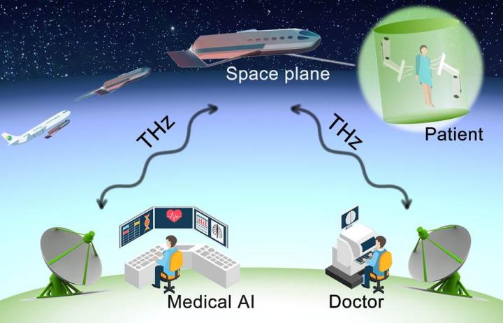 image: Medical AI and doctors at earth stations could remotely conduct a zero-gravity operation aboard a space plane connected via terahertz wireless links.
