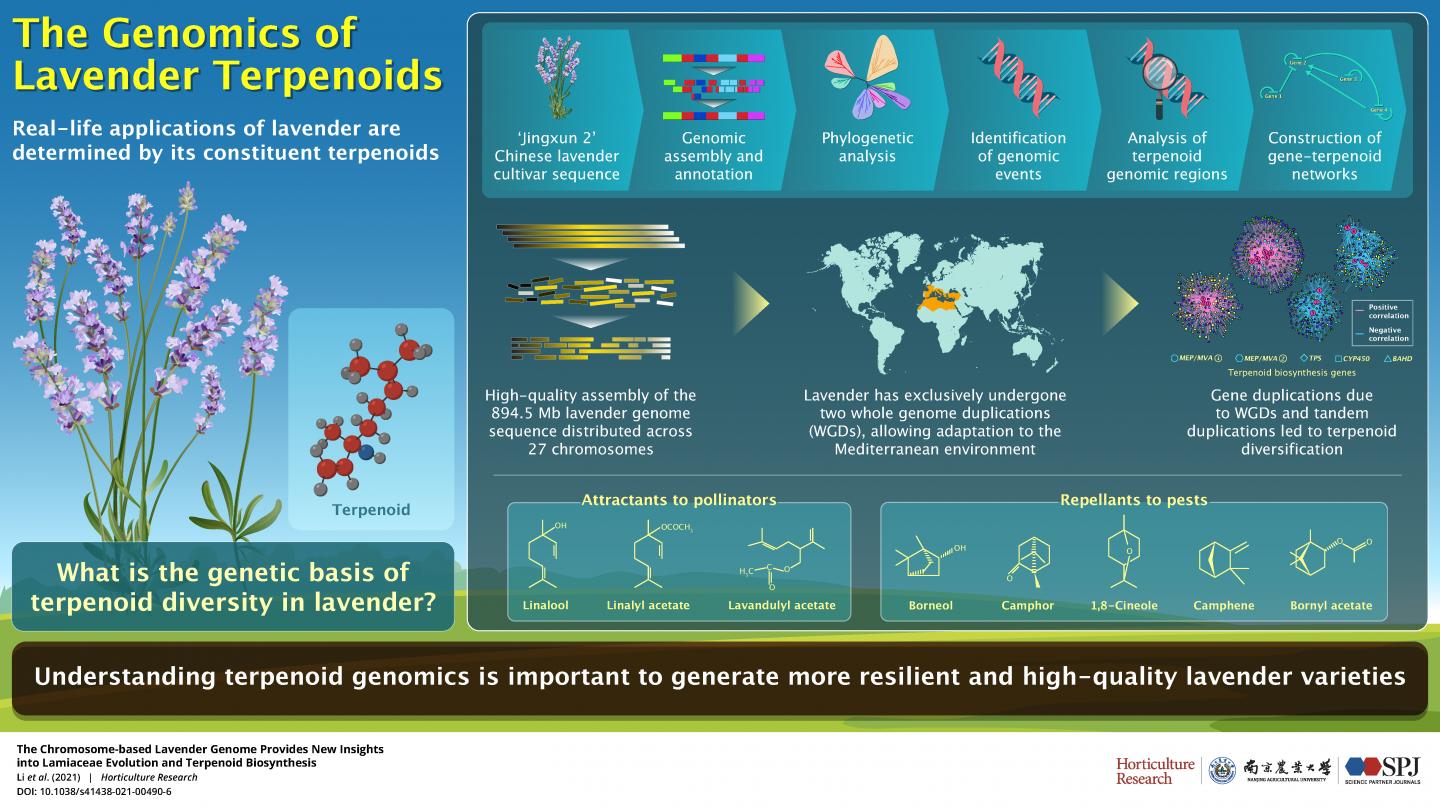 The team began by analyzing the high-quality reference genome data of the Chinese variety of lavender 'Jingxun 2'. Through phylogenetic analysis, they identified genomic events through the evolutionary history of lavender that led to the expansion of terpenoid biosynthetic genes in this species. Their analysis also yielded important insights into changes in these genes with respect to changes in the environment under which they grew.