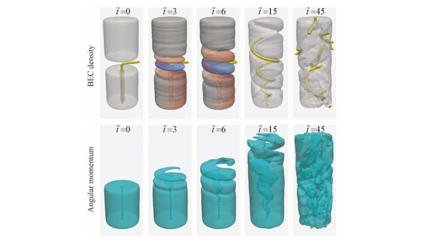 In a recent study, scientists from the U.S. Department of Energy’s (DOE) Argonne National Laboratory collaborated with scientists from the National High Magnetic Field Laboratory (MagLab) in Tallahassee, Florida, and Osaka City University in Japan to perform advanced computer simulations of merging rotating superfluids, revealing a peculiar corkscrew-shaped mechanism that drives the fluids into rotation without the need for viscosity.