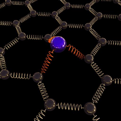 image: The animation shows the vibration energy of the silicon atom in the graphene crystal