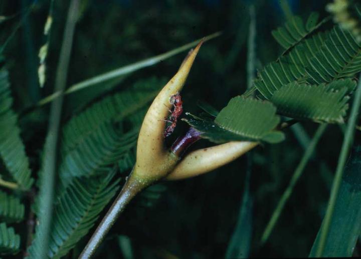 In a new study in Proceedings of the National Academy of Sciences, colleagues of Janzen's in the Penn Biology Department uncover a genetic mechanism that programs the plant side of the ant-acacia relationship. Scott Poethig, a plant biologist, and Aaron Leichty, who earned his Ph.D. working under Poethig and is now a postdoctoral researcher at the University of California, Davis, showed that these species of acacia develop the traits necessary to feed the ant colony--hollow swollen thorns to house them, and nectaries and nutrient-rich leaflet tips called Beltian bodies to feed them--as part of an age-dependent phenomenon in plant development.