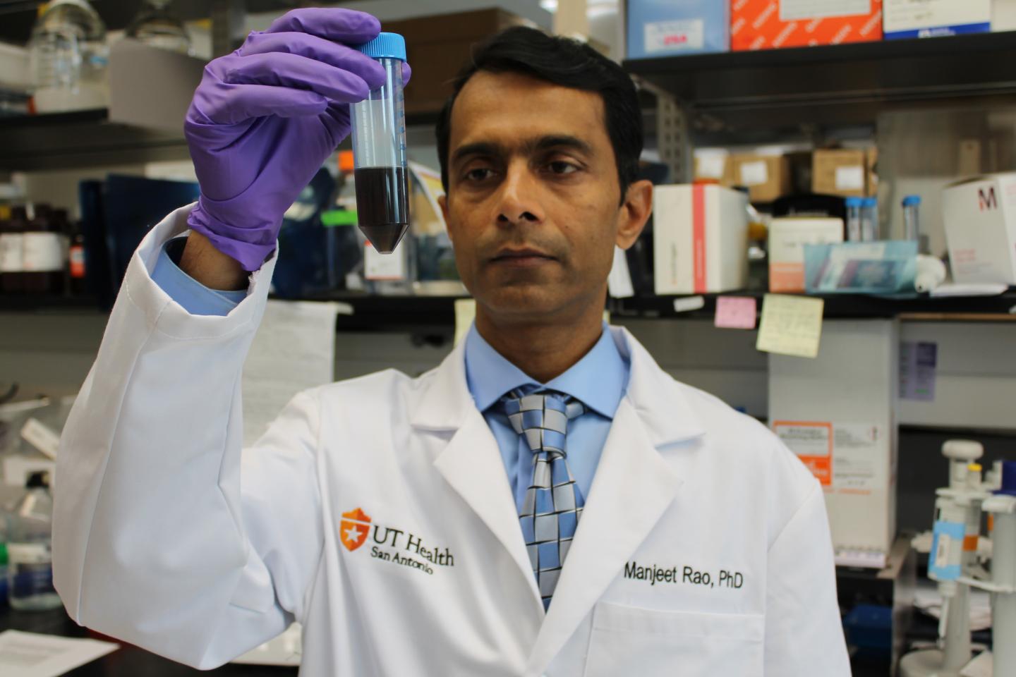 image: Manjeet Rao, Ph.D., of UT Health San Antonio, led a study that showed a small molecule is able to kill a childhood brain cancer called medulloblastoma. The molecule sensitizes the cancer to chemotherapy and radiation, offering hope that in the future oncologists could treat this cancer with far less chemotherapy and radiation.
