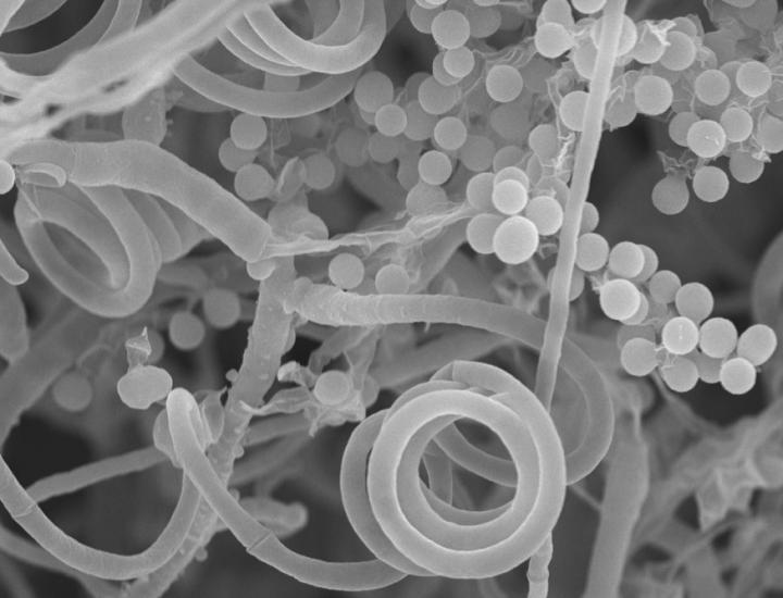 image: This is an electron micrograph of Trichophyton, commonly known as toenail fungus. New research shows the organism clones itself, making genetically identical daughters that may be vulnerable to new treatments.