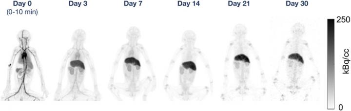 He continued, "Second, studies with 89Zr can be conducted with much lower injected doses of radioactivity. The late time point total-body imaging conducted in this study clearly demonstrates that acceptable quality imaging with 89Zr can be accomplished when there is as little as 1/100th of the activity remaining in the subject. This paves the way for broad and repeat use of 89Zr-radiolabeled tracers in patients with extremely low effective doses."