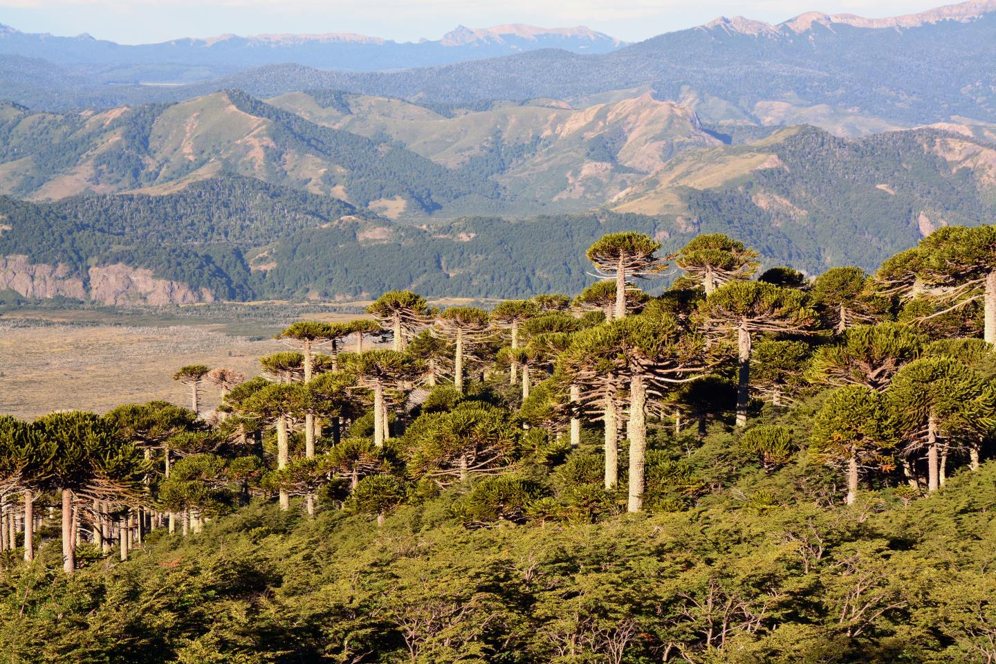 image: Araucaria araucana trees in northern Patagonia, Argentina, some of which were used in the study. Some trees can live 1,000 years.