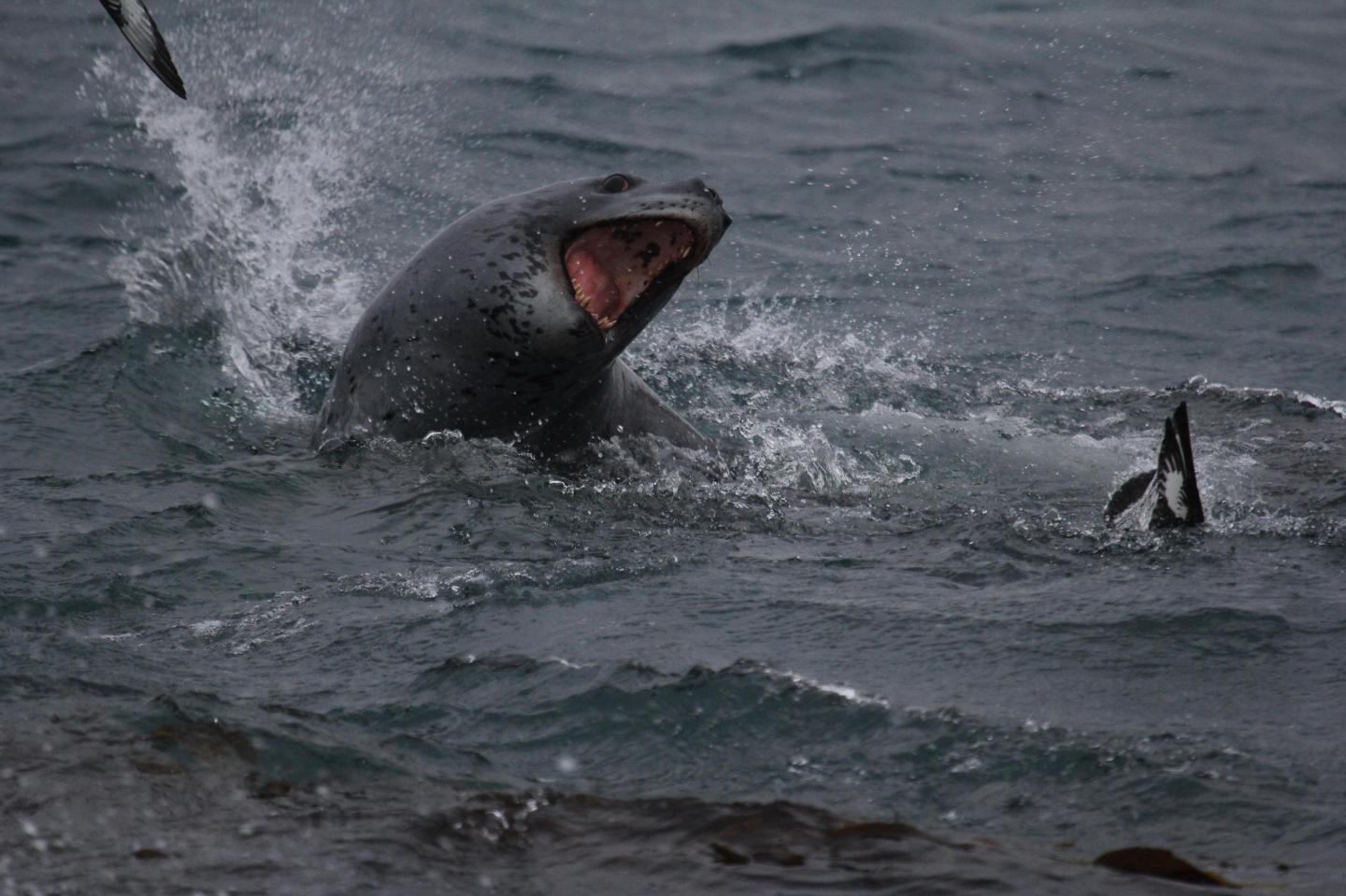 It also highlights examples of two seals feeding on the same penguin carcass, the first evidence of such behaviour ever being recorded.