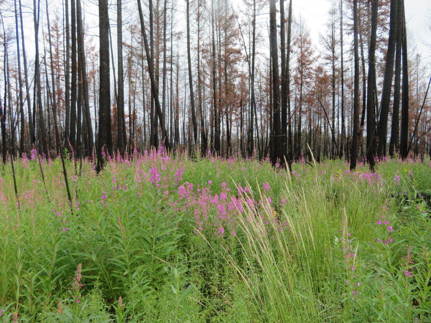 "Post-fire salvage logging greatly changed the habitat structure of post-fire stands, removing vegetative cover and rendering those sites unsuitable for hares and red squirrels," says Kelly. "The post-fire salvage-logged areas supported no hares or red squirrels for at least eight to nine years after the initial wildfire. Burn areas where no post-fire harvesting took place supported low densities of hares and red squirrels by that time."