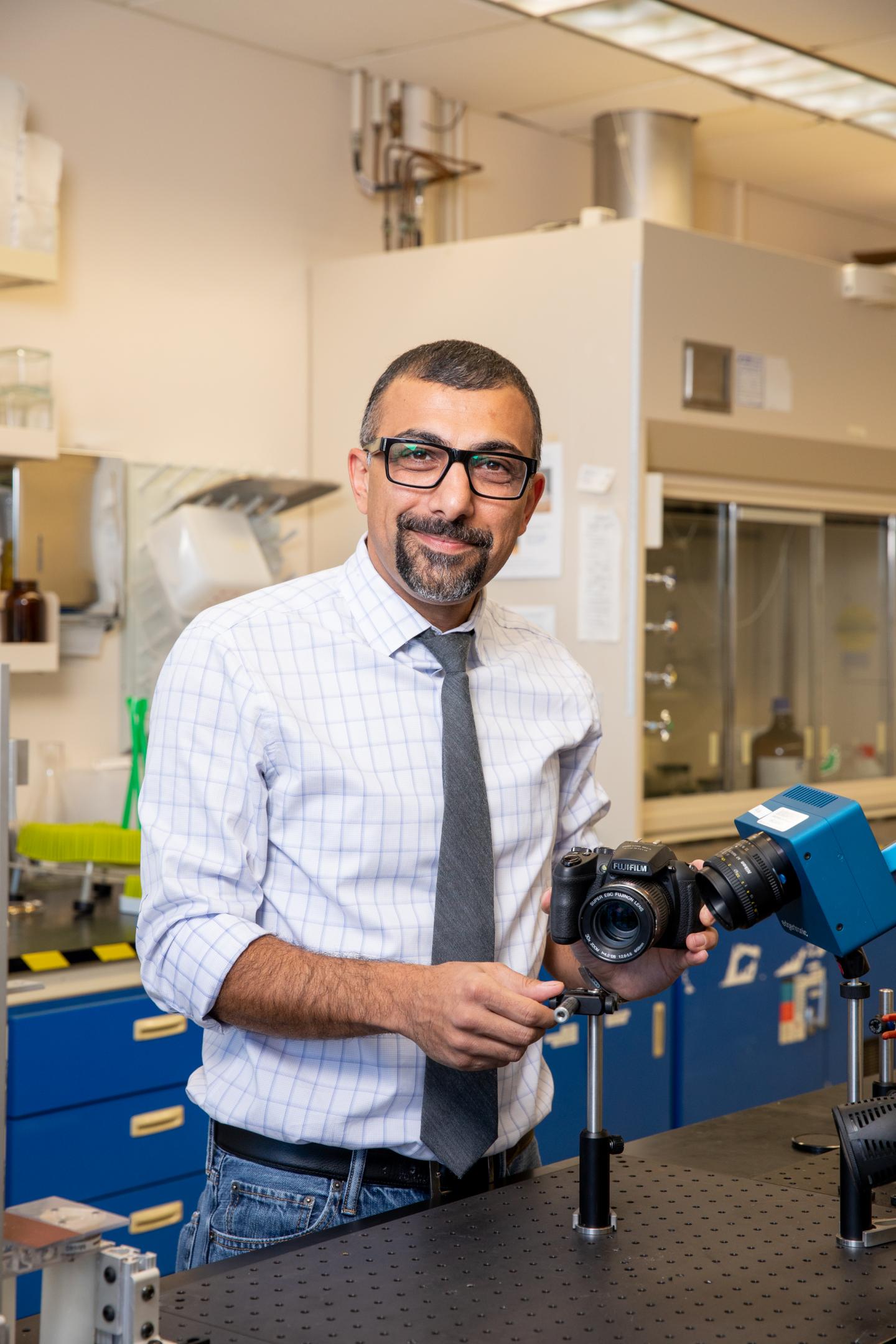 image: This is Ecology and Evolutionary Biology Associate Professor Emanuel Azizi in his research lab.