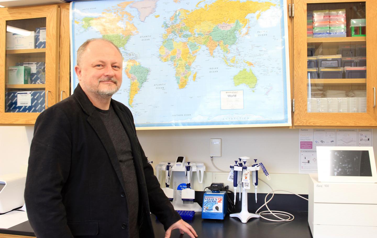 image: Lead author Dr Taras Oleksyk in his laboratory at Oakland University, Rochester, MI