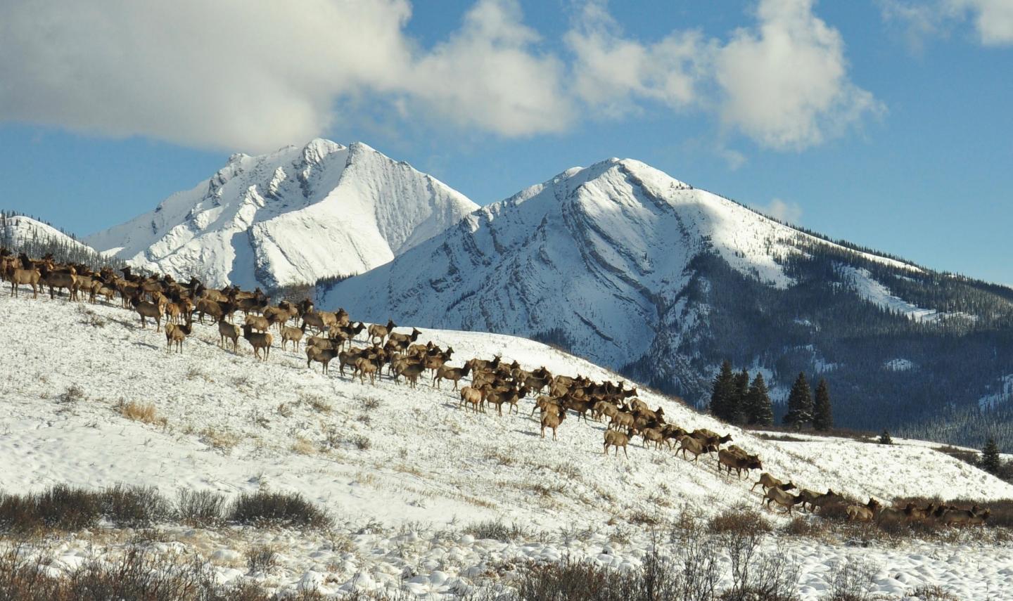 Here, elk migrate toward Banff National Park.