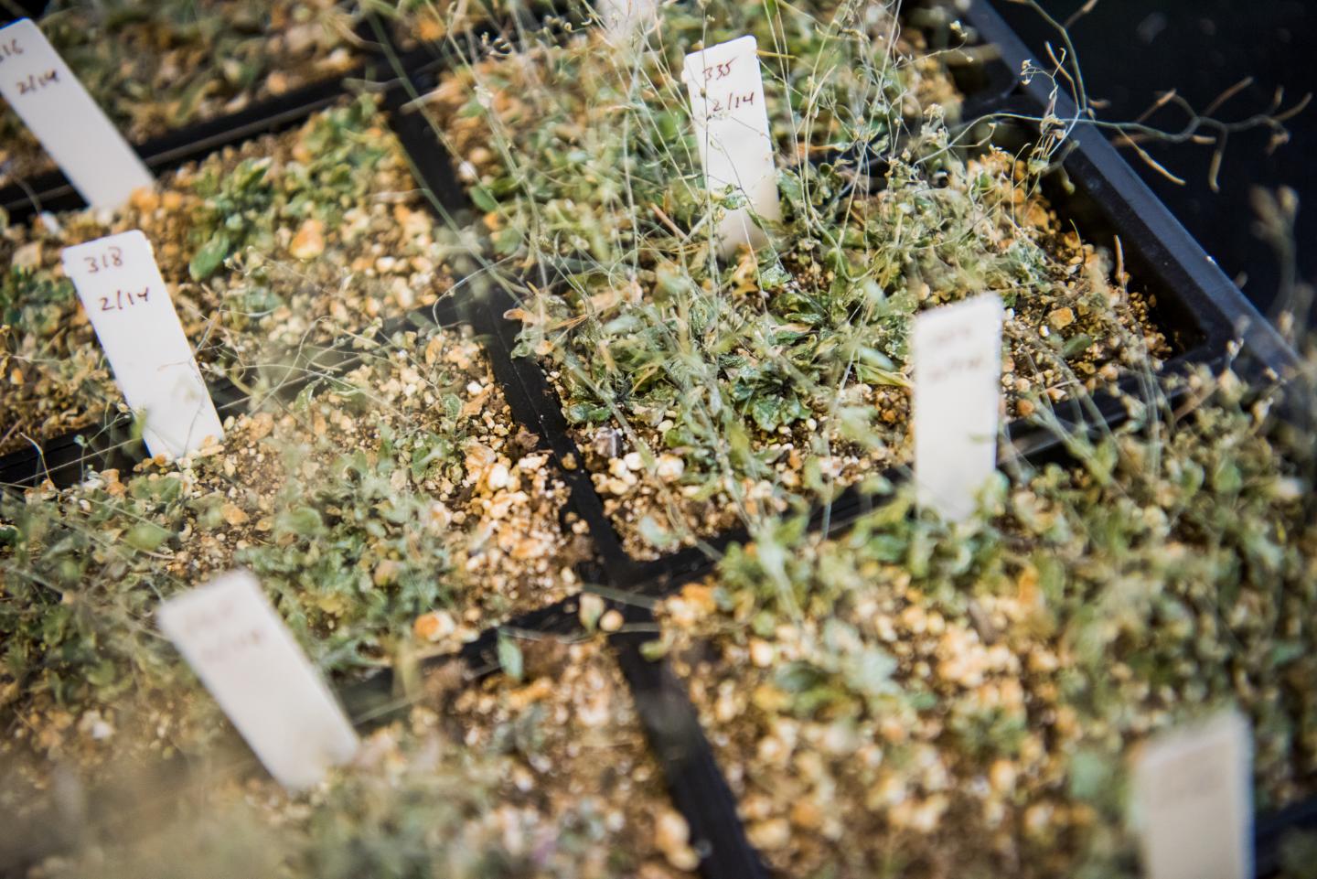 image: These Arabidopsis plants are part of studies to determine links between the plant defense system and circadian clock carried out by Hua Lu, professor of biological sciences at UMBC, and her lab members. The results could lead to plants that are more effective at fending off pathogens and pests or even influence human medical treatment.